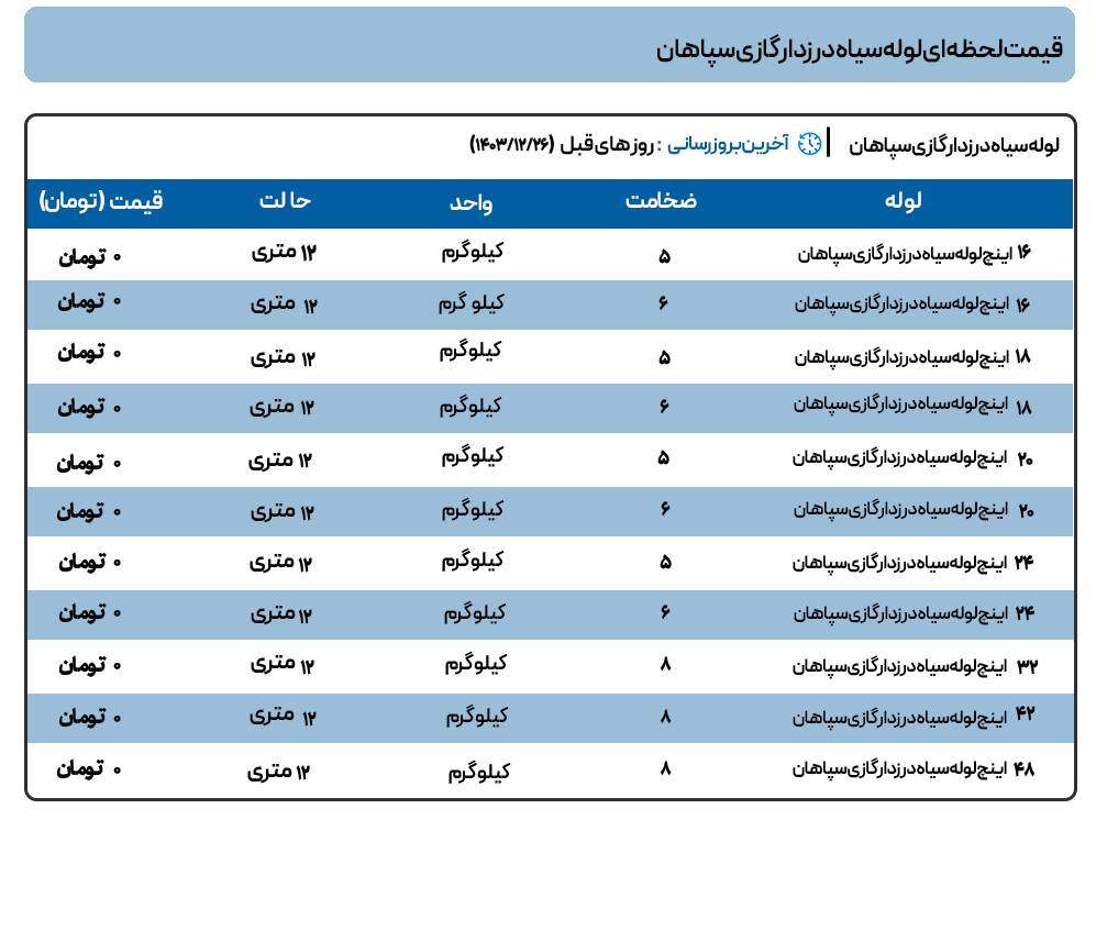 لوله سیاه درزدار گازی سپاهان از لوله‌های فولادی جوشکاری‌شده باکیفیت است که در تأسیسات گازرسانی خانگی و صنعتی به کار می‌رود. این لوله‌ها مطابق با استانداردهای گازرسانی تولید شده و تحت آزمایش‌های فشار و کیفیت قرار می‌گیرند. استحکام بالا، جوش مقاوم و دوام طولانی از ویژگی‌های اصلی آن‌هاست. لوله‌های گازی سپاهان به دلیل کیفیت مطلوب، انتخابی مطمئن برای پروژه‌های تأسیساتی محسوب می‌شوند.